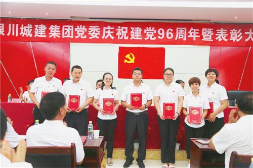2017年7月1日下午,銀川城建集團(tuán)慶祝建黨96周年暨表彰大會隆重召開。集團(tuán)全體黨員及入黨積極分子130人參加了會議,全體黨員面對莊嚴(yán)的黨旗重溫了入黨誓詞。經(jīng)各基層支部評選,集團(tuán)黨委研究決定,對先進(jìn)黨支部,優(yōu)秀黨務(wù)工作者,優(yōu)秀共產(chǎn)黨員進(jìn)行了表彰。雷光新書記為全體黨員上了一節(jié)深刻的黨課,從黨的歷史講到黨建工作理論,結(jié)合企業(yè)實(shí)際,對廣大黨員提出了嚴(yán)厲的要求,為下階段各支部工作明確了具體任務(wù)。